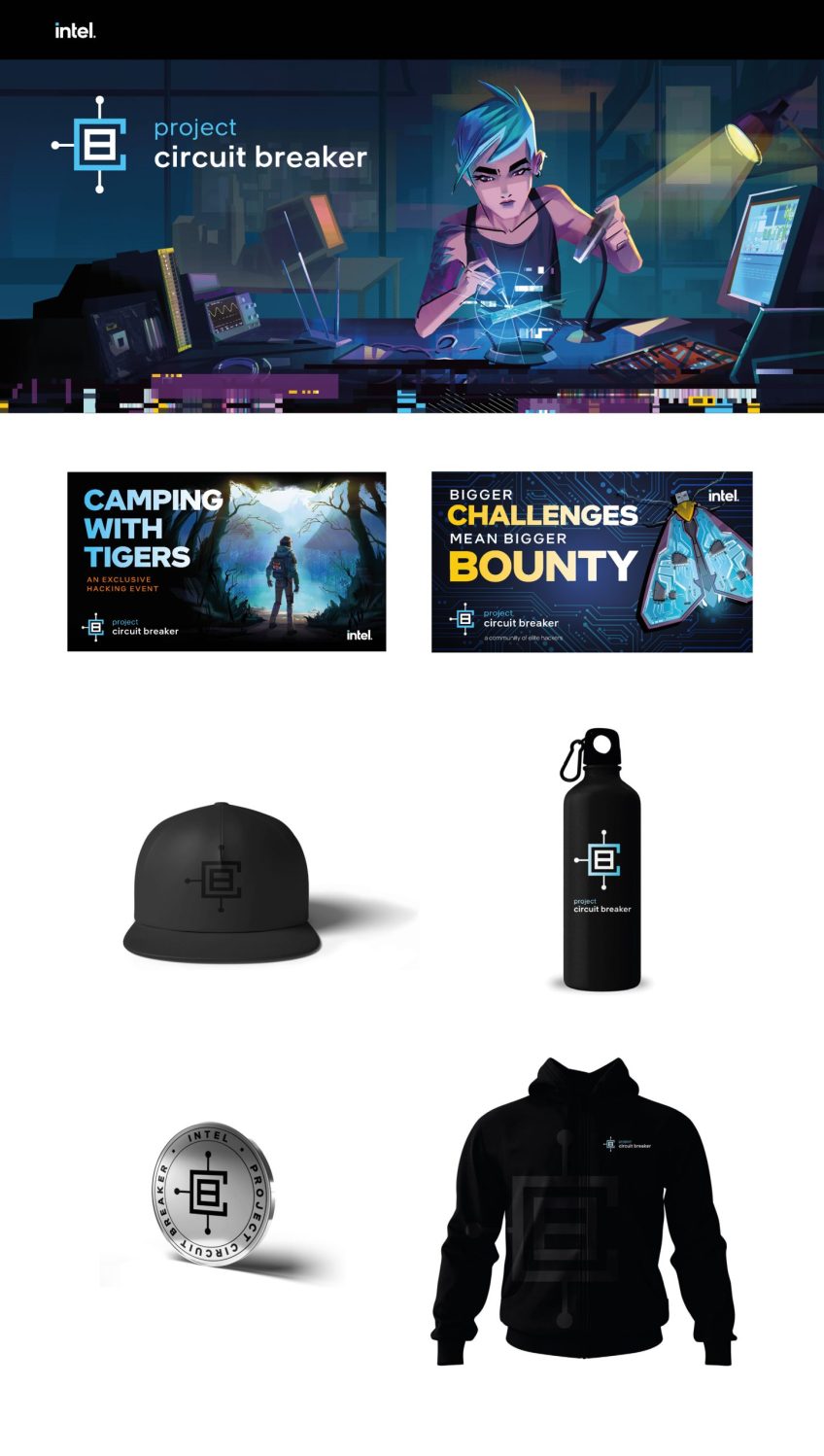 Project Circuit Breaker is Intel’s Bug Bounty Program, challenging security researchers to identify vulnerabilities in Intel’s hardware and software, often with cash rewards. The program consists of virtual and in-person education and hands-on hacking events. Fantasy-style illustrations enhance engagement, creating an immersive experience that resonates with the target audience of researchers and hackers.