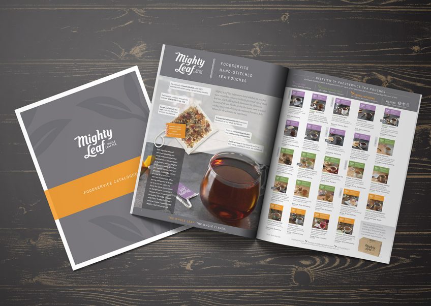 While in the midst of a re-brand, Mighty Leaf Tea was in need of new collateral, using their new logo and photography. This catalog is comprehensive of Mighty Leaf Tea product lines and offerings.