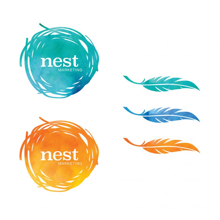 Nest Marketing is small start-up, run by a talented marketing professional who understands that good marketing — the nest — is comprised of many overlapping strategies, ideas and goals. It’s not one thing, it all things together that make a company successful. The primary logo was created with variation of color in mind and the feather secondary element will be used as part of the branding.